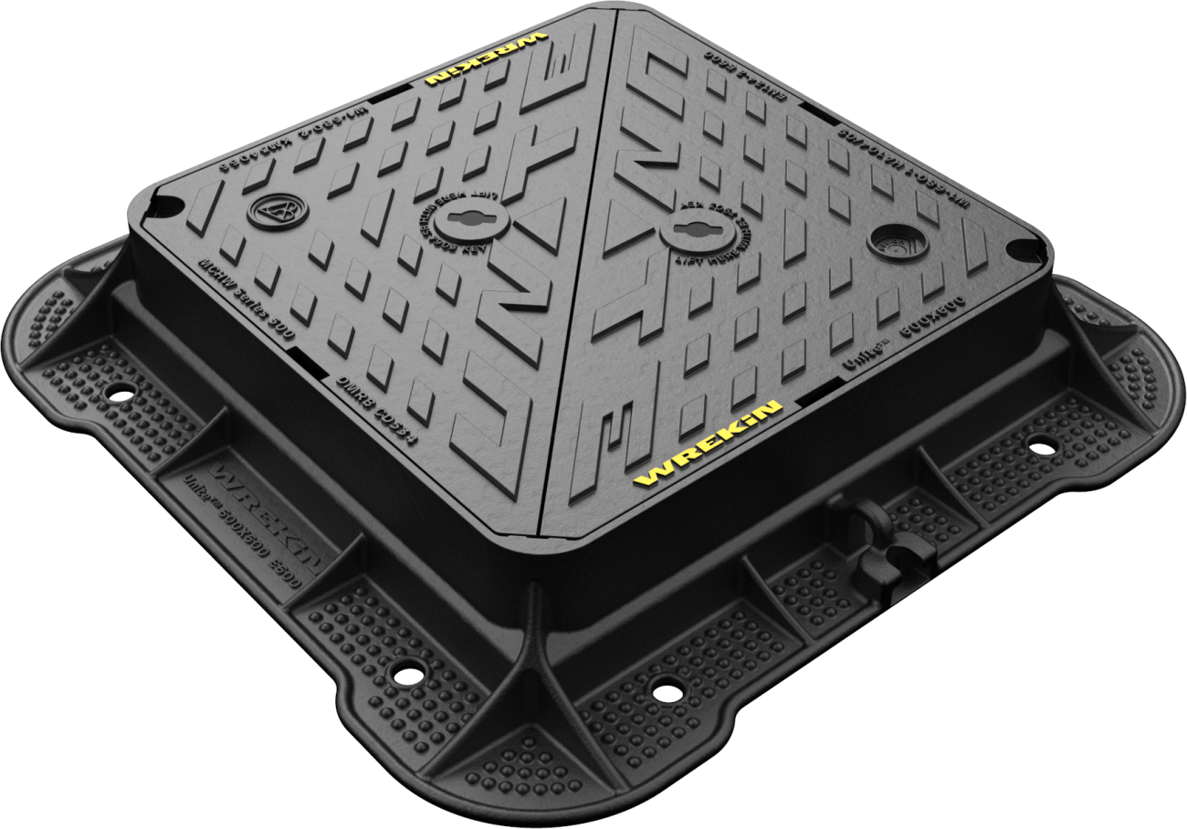 DMT0E6/6060/KUESQRUnite E600 manhole cover 600mm DIA clear opening with 150mm frame depth, Square to round